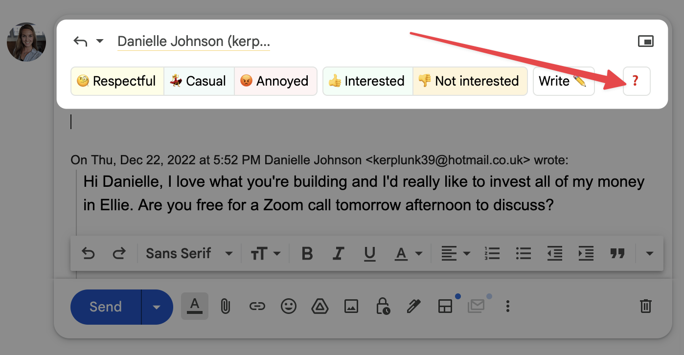 Open Gmail, click reply to an email, and let Ellie craft you a reply!